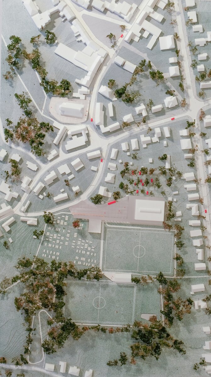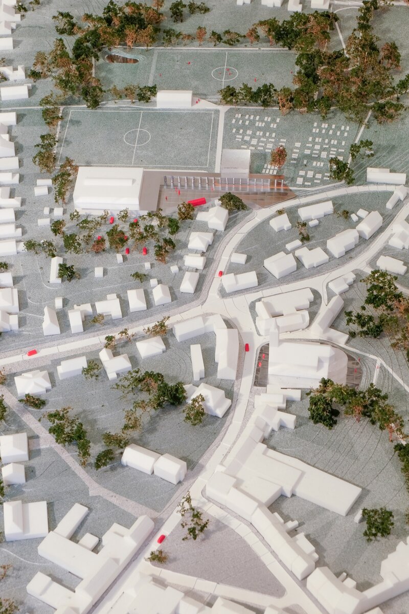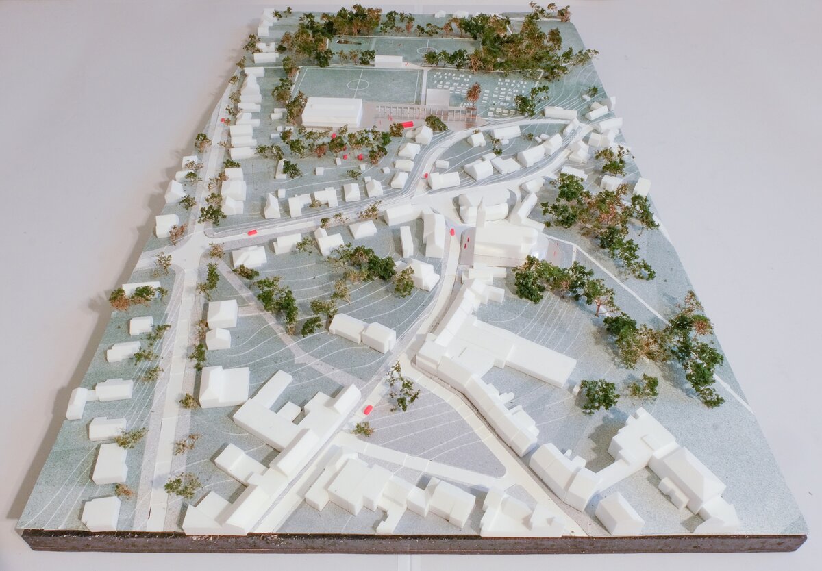 Het grote gebaar voor deze site is de creatie van een centraal plein. Dat geeft ademruimte wanneer je de site binnenkomt, maar wordt ook het sluitstuk van de centrale dorpsas.