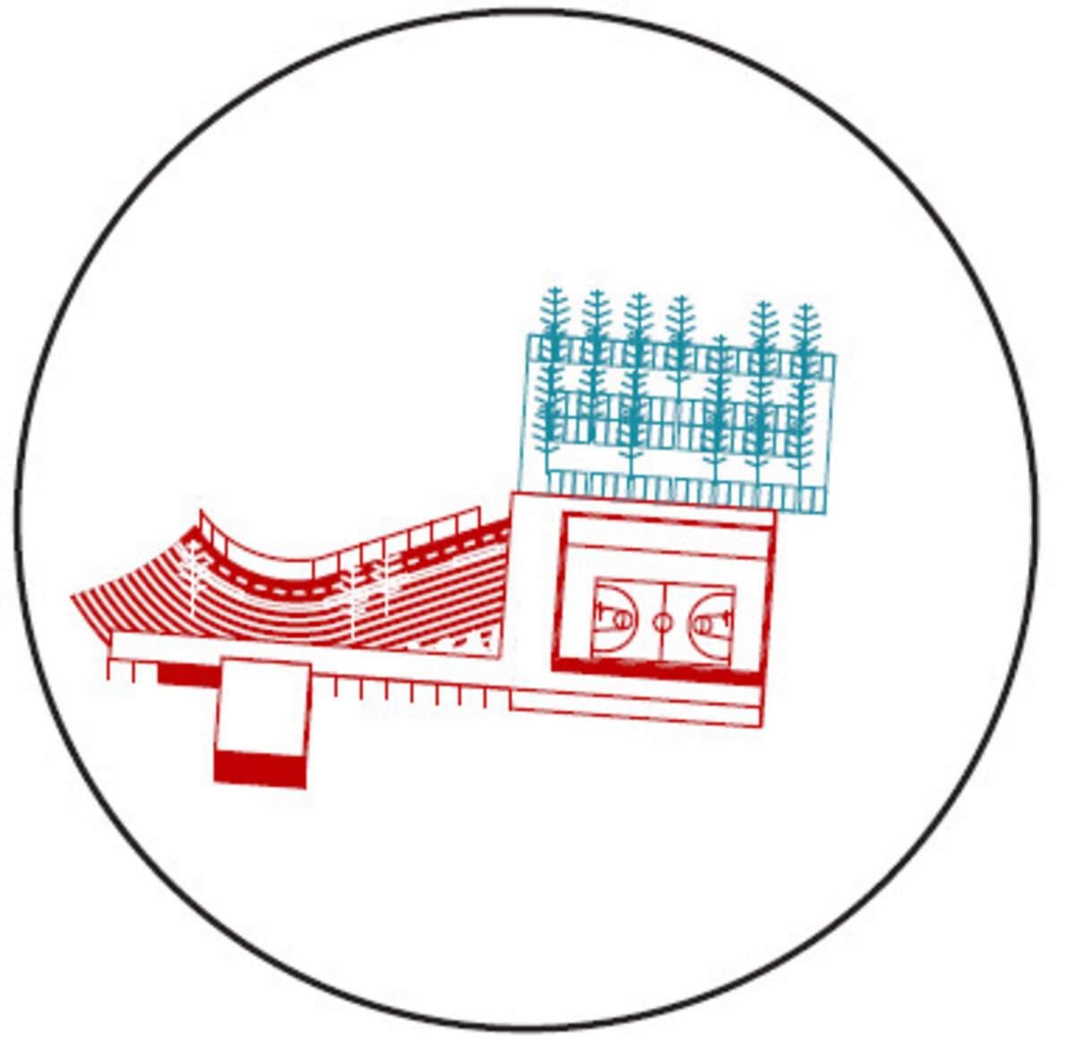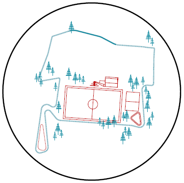 De beboste rand geeft de site vandaag een sterk karakter. De bomen benadrukken de buitenkamers van de voetbalvelden én vormen een beschermende buffer naar de directe buren. De nieuwe parking ten noorden van de sporthal kan deze beboste rand versterken op de plek waar de meeste woningen aan de site grenzen. Bovendien is er vooral vraag naar piekparkeren zodat een groot deel van de parking onverharde groene ruimte kan blijven met een occasionele auto als bezoeker. De bestaande bomen kunnen ook behouden blijven. Door de auto niet tot tegen de ingang te laten parkeren wordt er ook een duidelijk signaal gegeven om de gebruikers aan te moedigen op een sportievere manier naar hun sportinfrastructuur te komen.