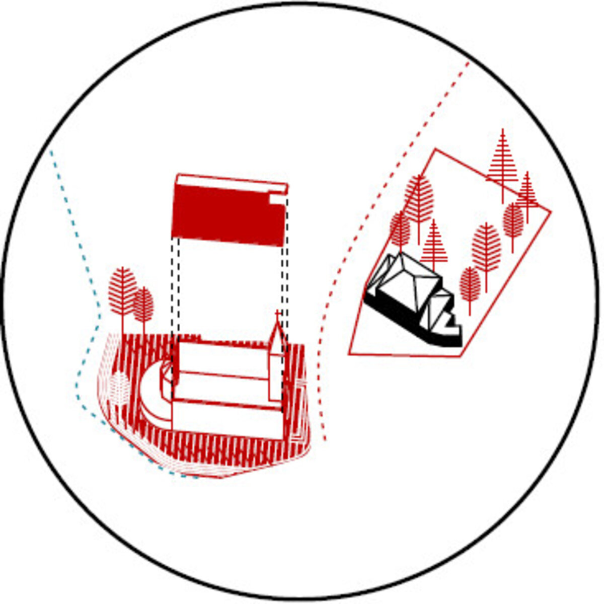 Het kerkplein kan een veilige drop-off lus worden als toegang voor de school en als uitkijkpunt naar het landschap op de wandelroute van de Pedemolen. Dit is een aanzet naar een nieuwe bestemming van de kerk die een centrale plek blijft behouden in Schepdaal. De tuin van de pastorij blijft toegankelijk voor de Chiro. De tuin is één van de openingen langs de centrale dorpsas die de verschillende pleinen met elkaar in verbinding brengt. Het overige kerkpatrimonium heeft een minder cruciale locatie binnen Schepdaal. Deze gebouwen kunnen herbestemd worden voor allerhande functies. Ze opnieuw in gebruik nemen kan het centrum opnieuw opladen en nieuw leven geven.