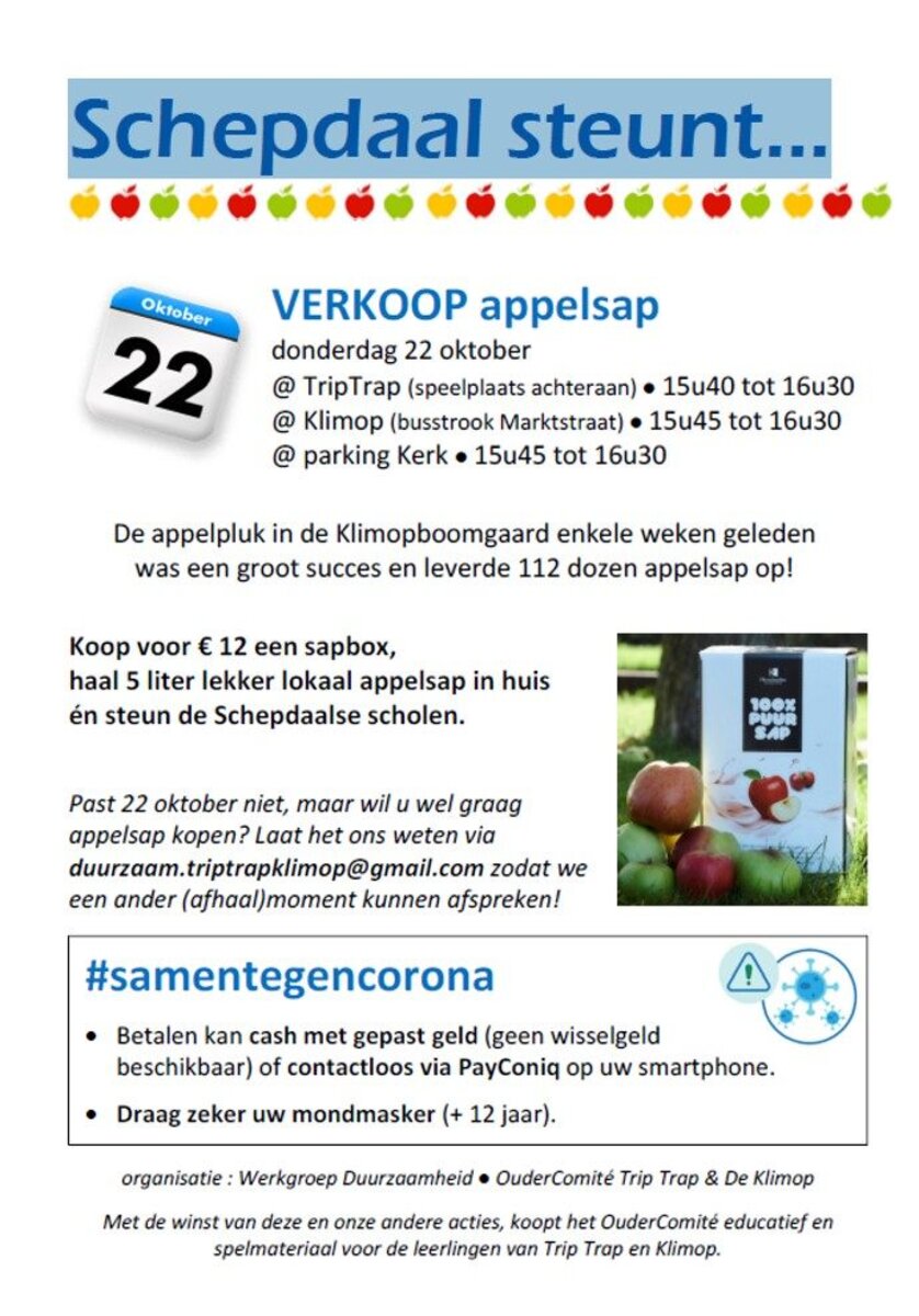 Oudercomité - Verkoop appelsap uit de boomgaard