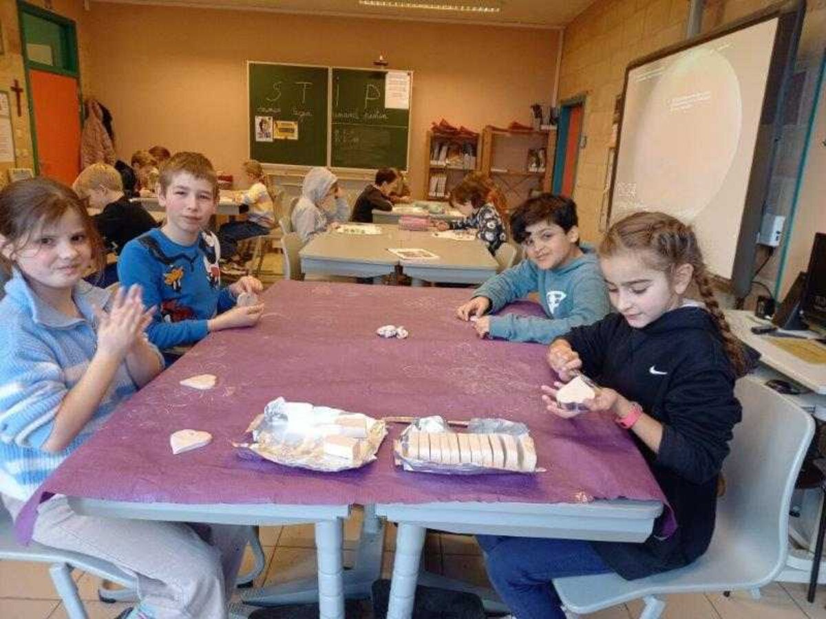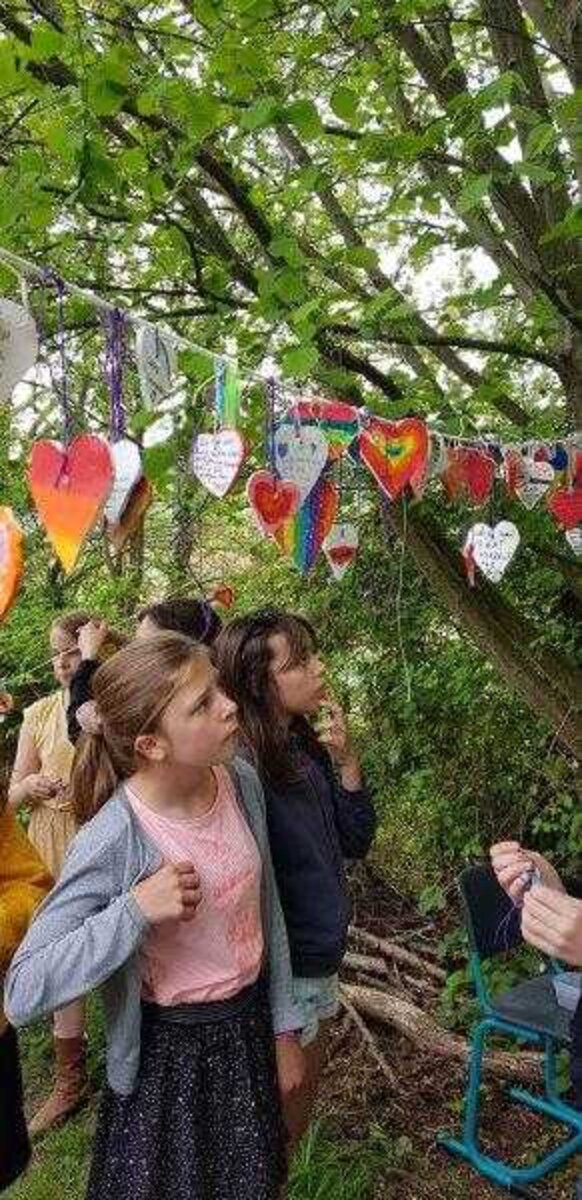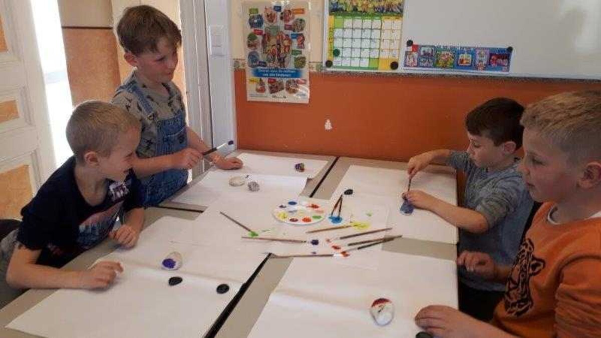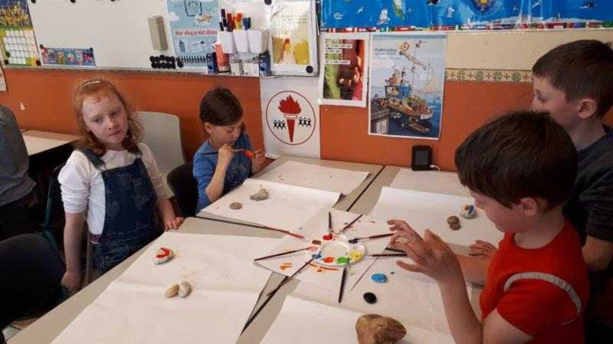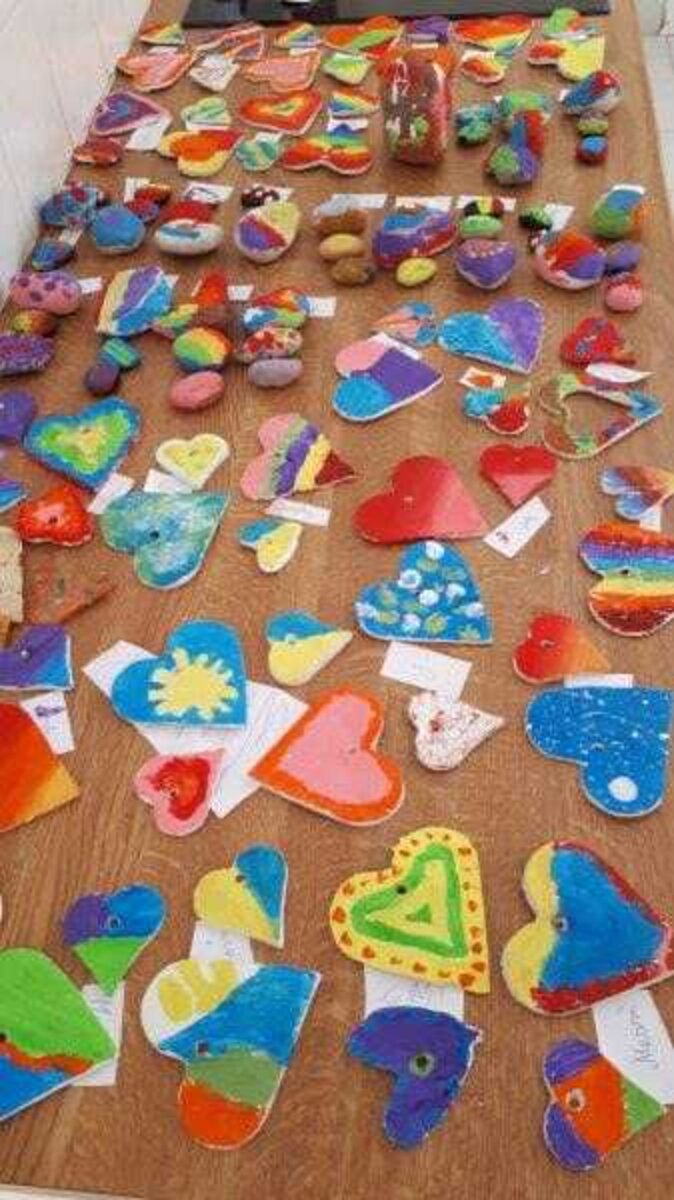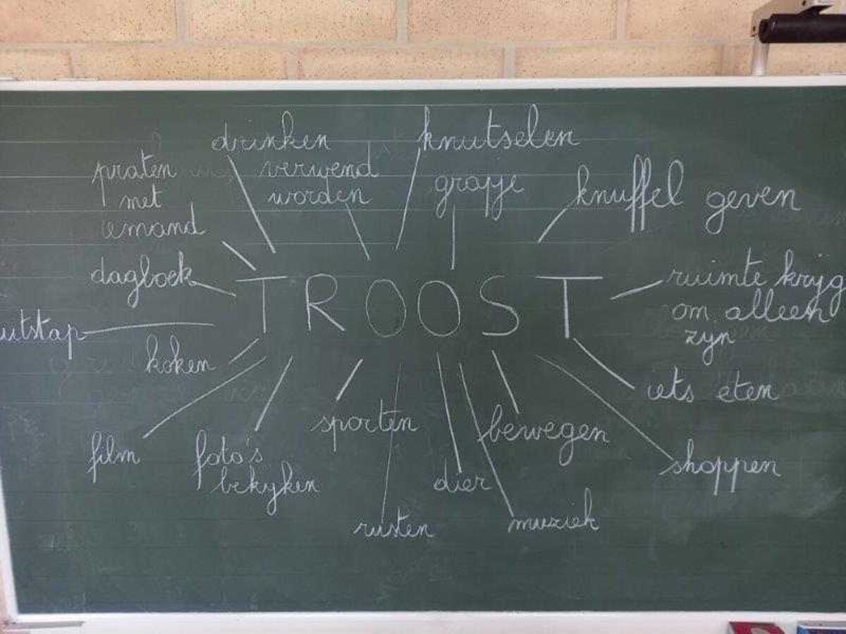 Daarom kwamen we tijdens de lessen levensbeschouwing een aantal keren samen dit schooljaar om te praten over ‘troosten’ en om enkele opdrachtjes over dit onderwerp te vervullen. We zorgden er ook voor dat de troostplek echt tot leven kwam. Zo plantten we in de herfst enkele bloembollen waaruit in de maand maart de prachtigste bloemetjes tevoorschijn kwamen. De jongste leerlingen versierden stenen met vrolijke kleuren en tekeningetjes, de oudste leerlingen versierden hartjes uit klei en schreven er ook een liefdevolle, troostende boodschap op. Hopelijk is het nu een plekje waar iedereen die er nood aan heeft even naartoe kan gaan om tot rust te komen, troost te vinden en daarna er weer met veel frisse moed tegenaan kan. Ga gerust eens een kijkje nemen en laat je hart verwarmen door de moois dat je zal zien en lezen!