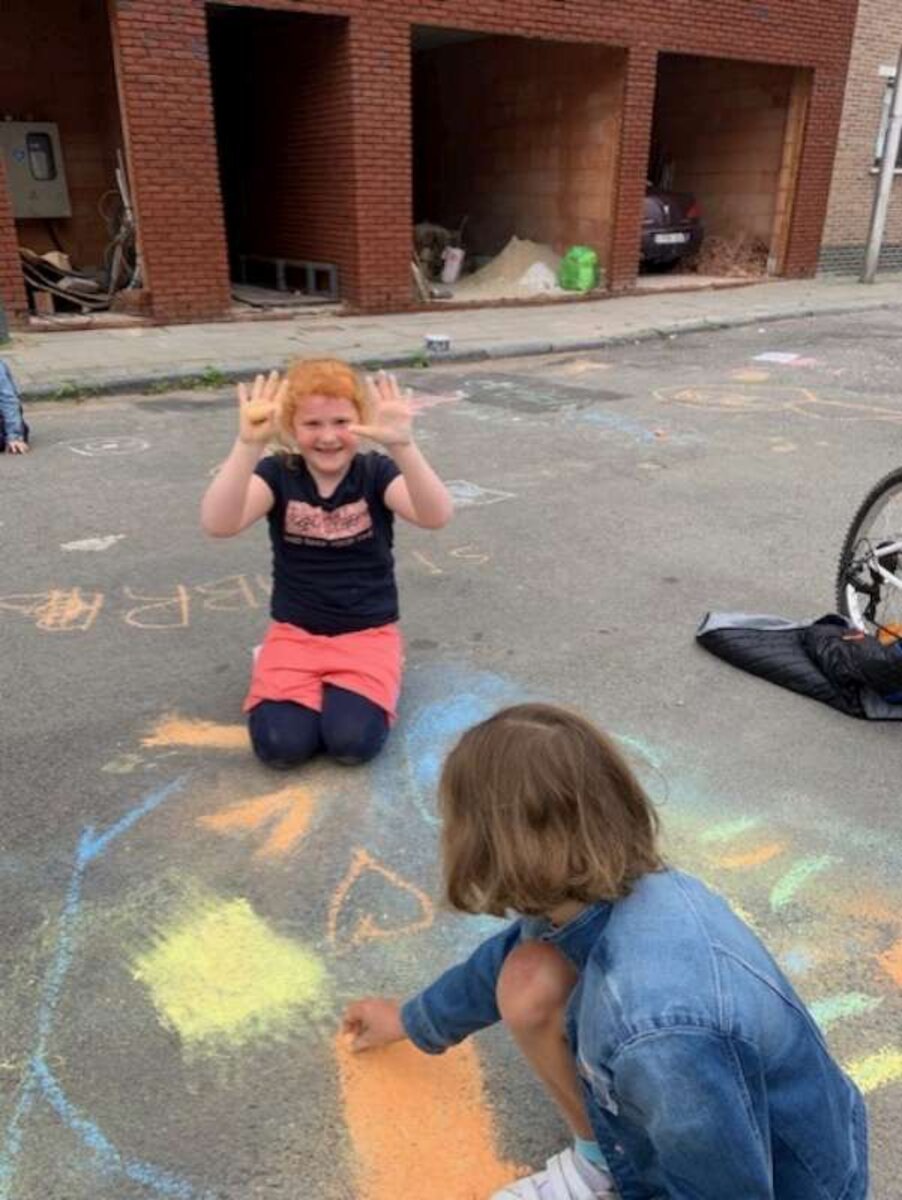 -Eerst hingen de kleertjes aan de waslijn, daarna hingen ze de gebouwen op.