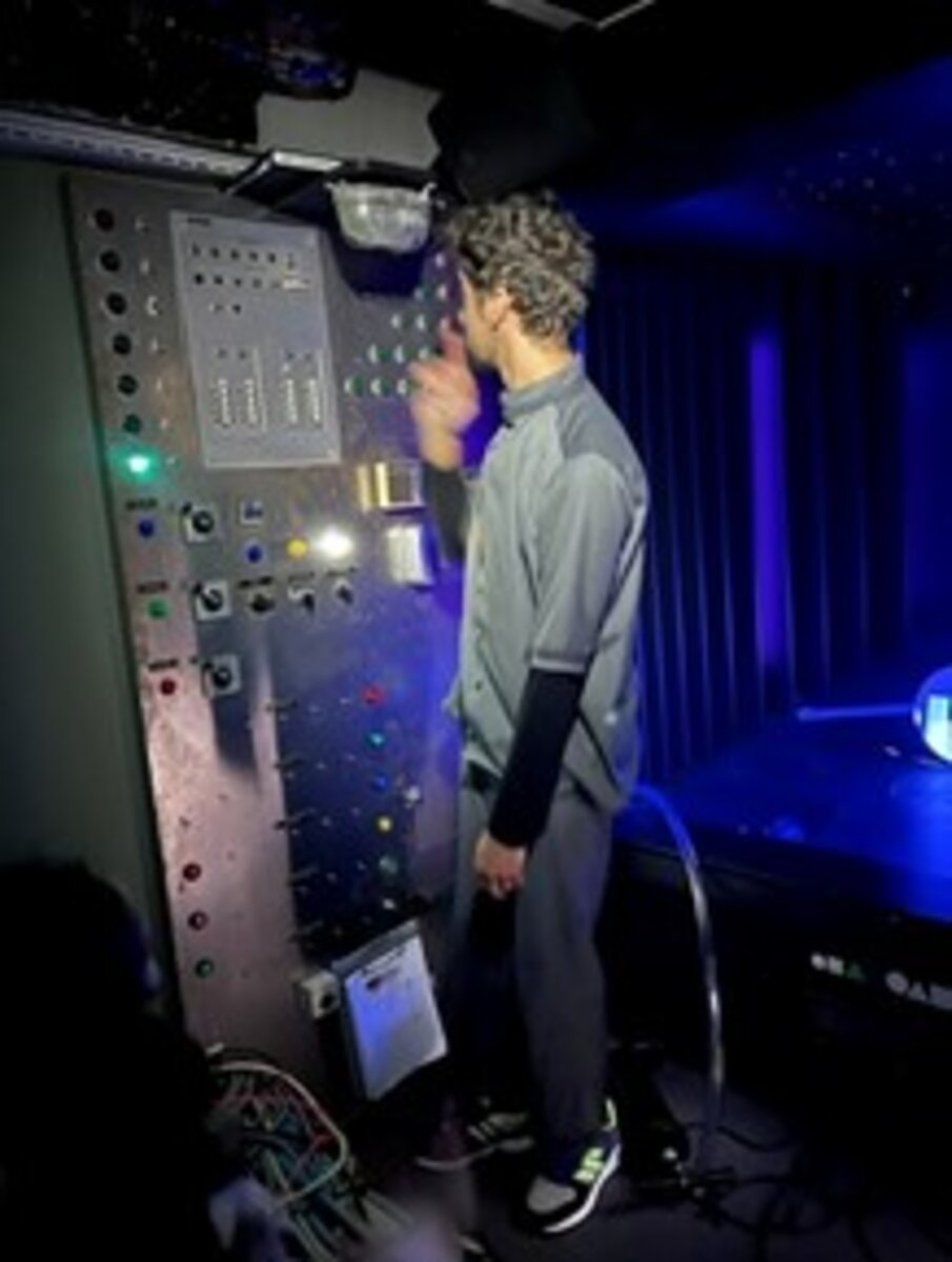 Opeens begon hij op de knopjes van de machine te kloppen.