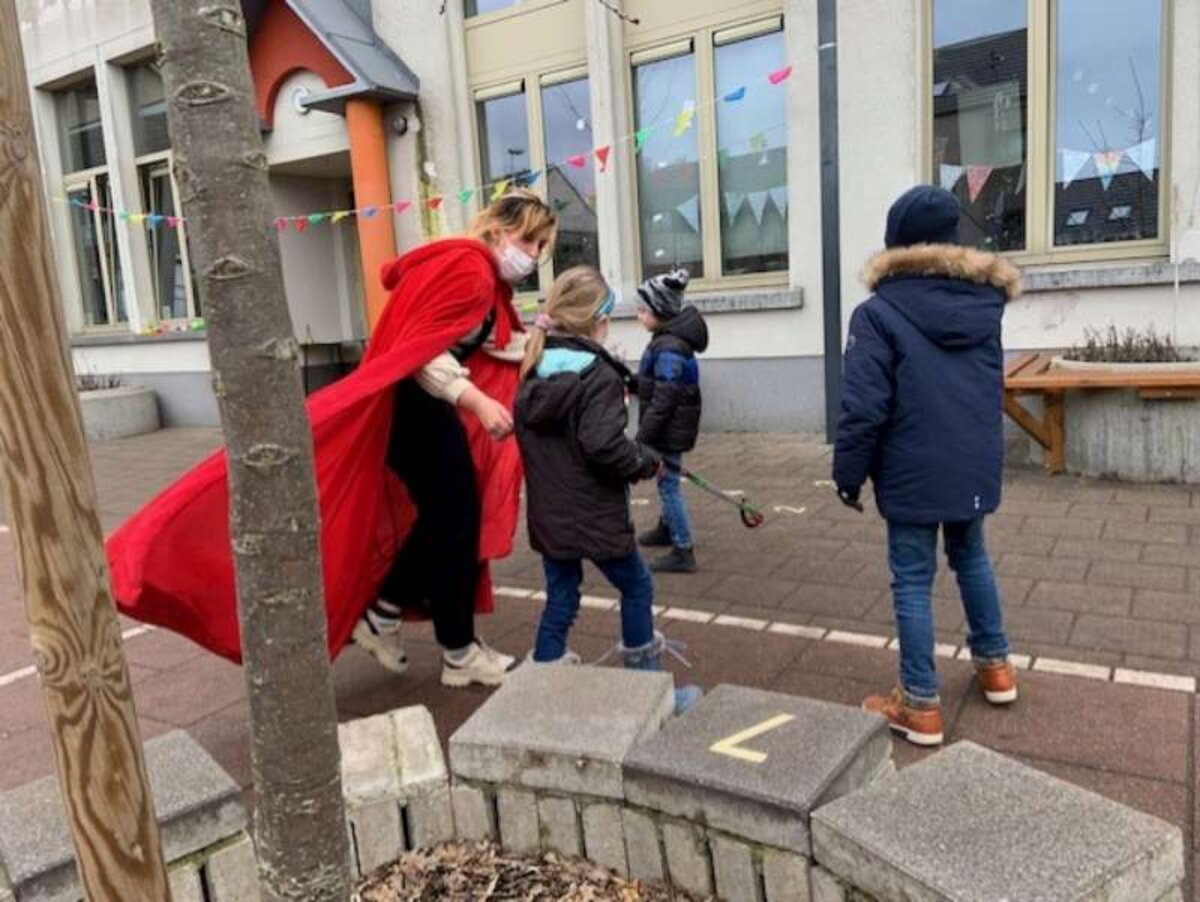 Kinderen vertelden de verhaaltjes en raadden wat de toneelspelers deden.