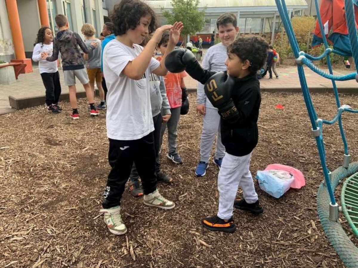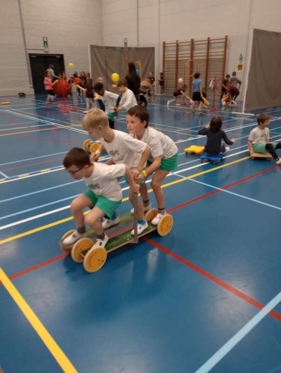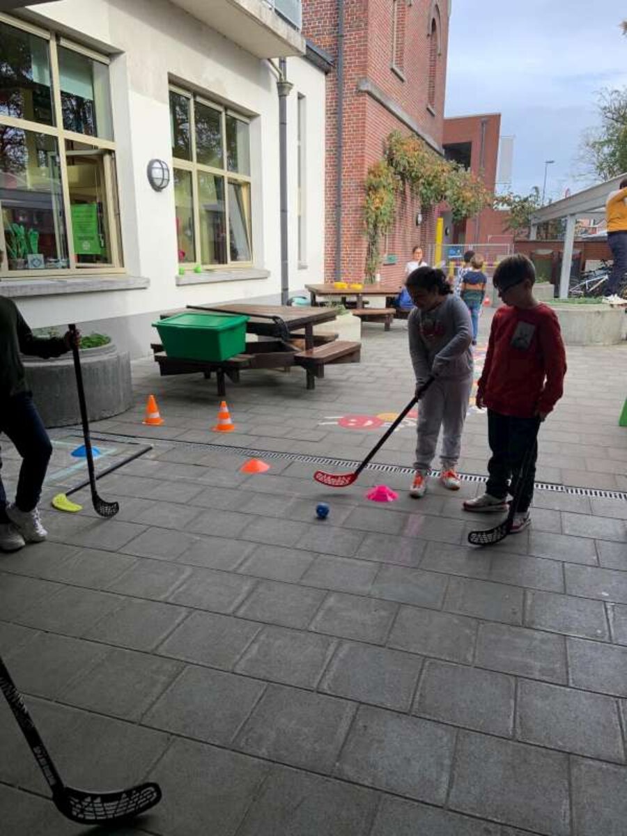 Daarom lieten de leerlingen van het 5de leerjaar ons gisteren kennis maken met verschillende hobby’s (turnen, Spaanse les, badminton, voetbal, dansen, basketbal, zingen, boksen…).