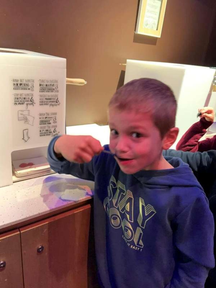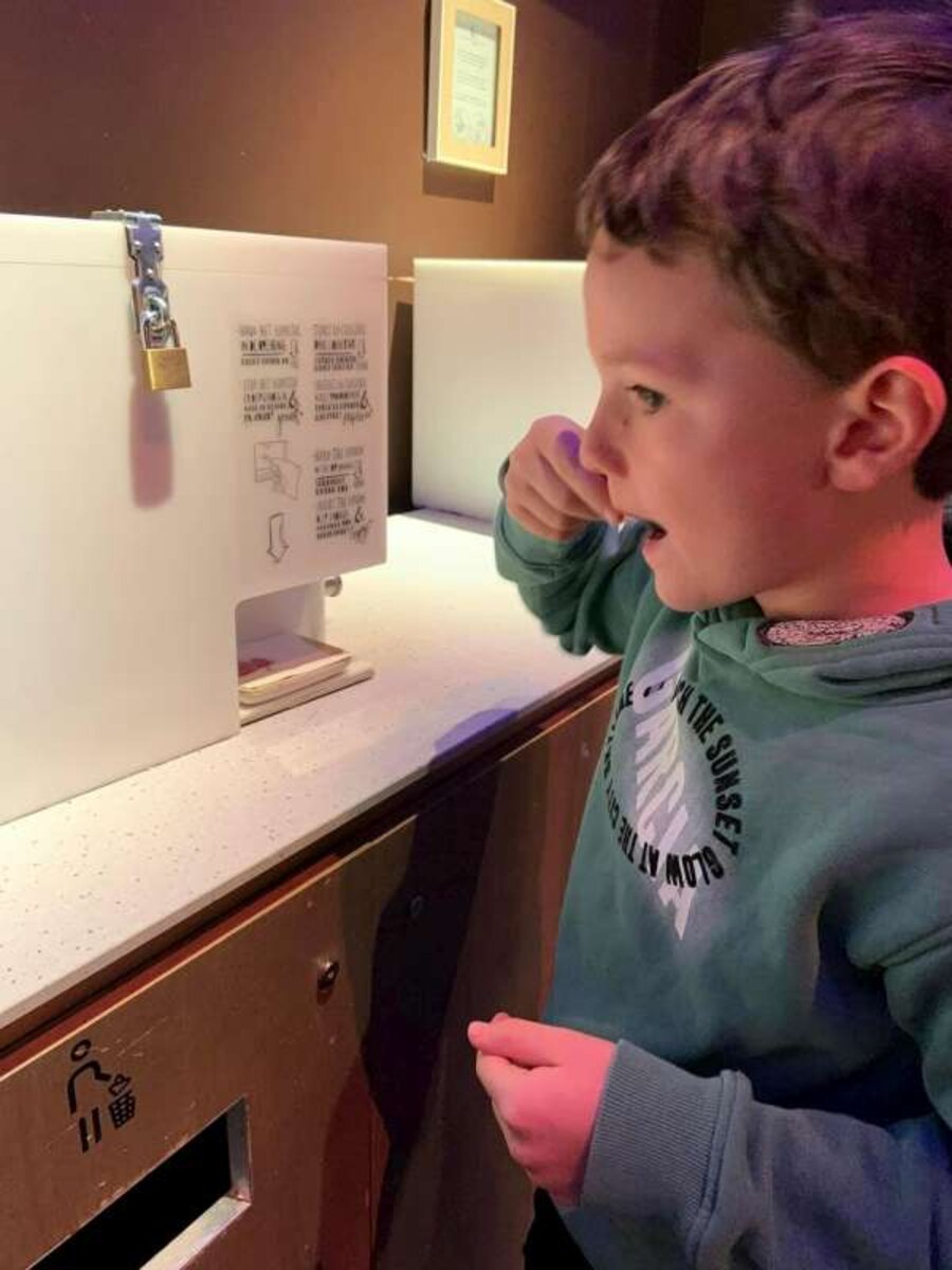We verlieten het station en zagen Chocolate Nation al van verre staan.