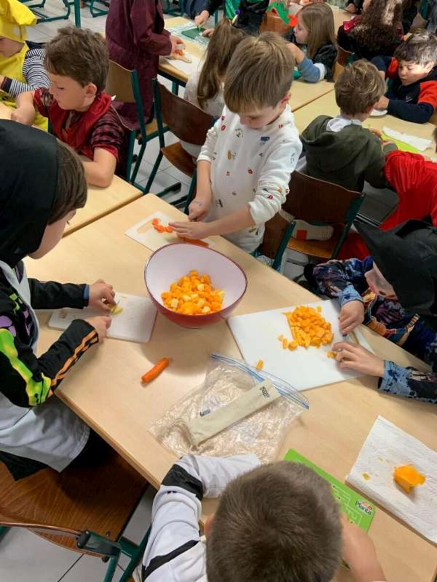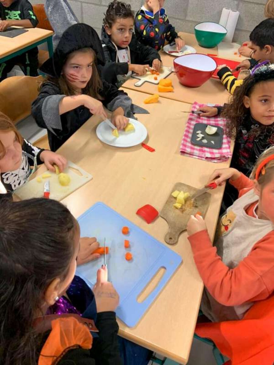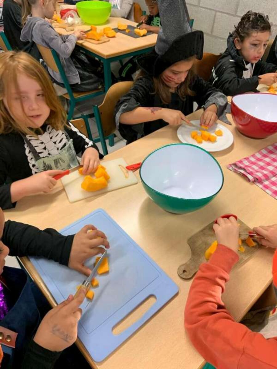 Om Halloween af te sluiten maakten we tijdens de voormiddag lekkere pompoensoep.