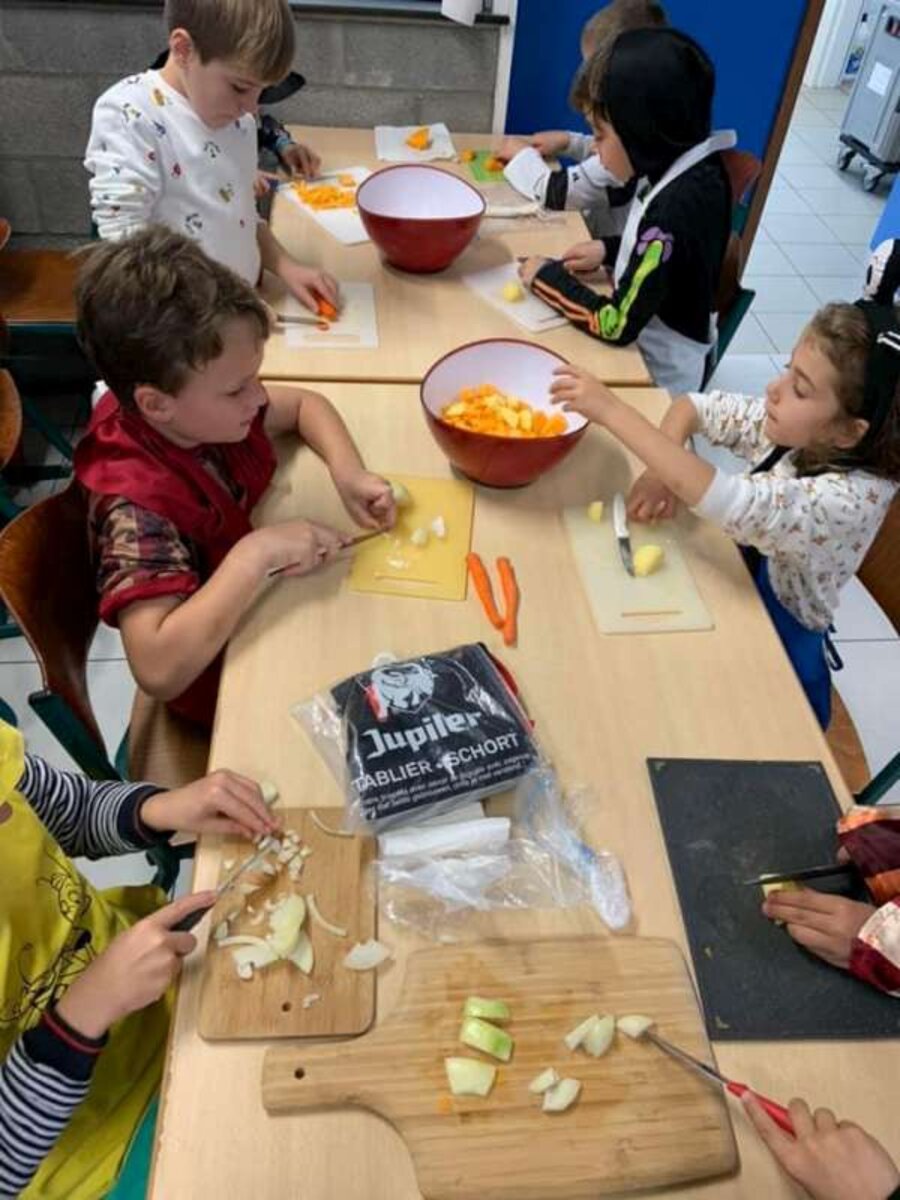 We sneden zelf de groenten.