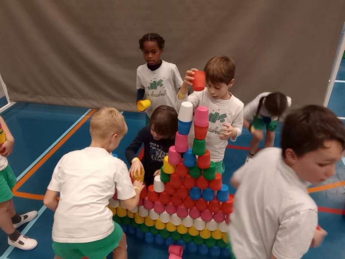 Wie kon de hoogste toren bouwen met zoveel bekers?