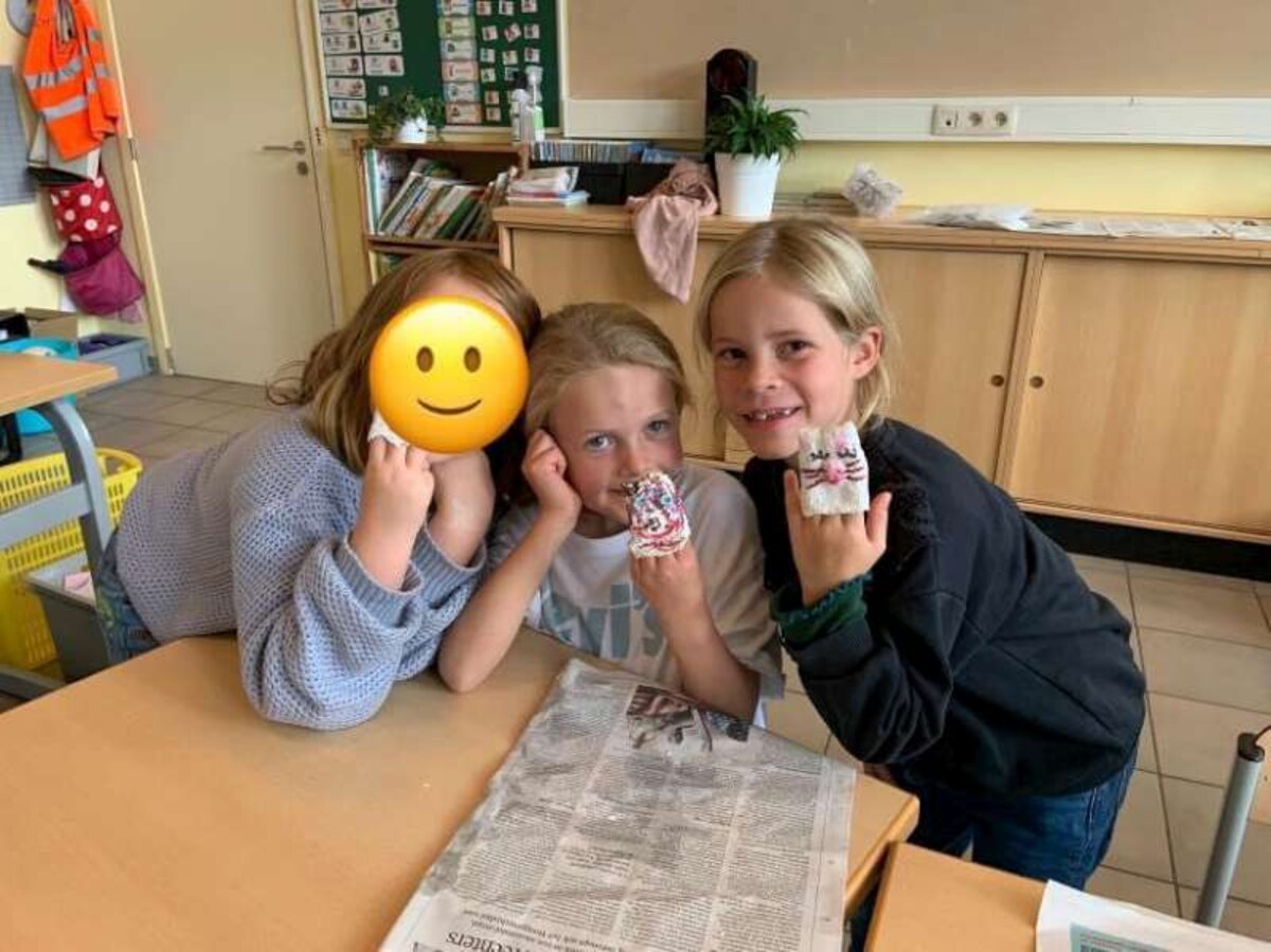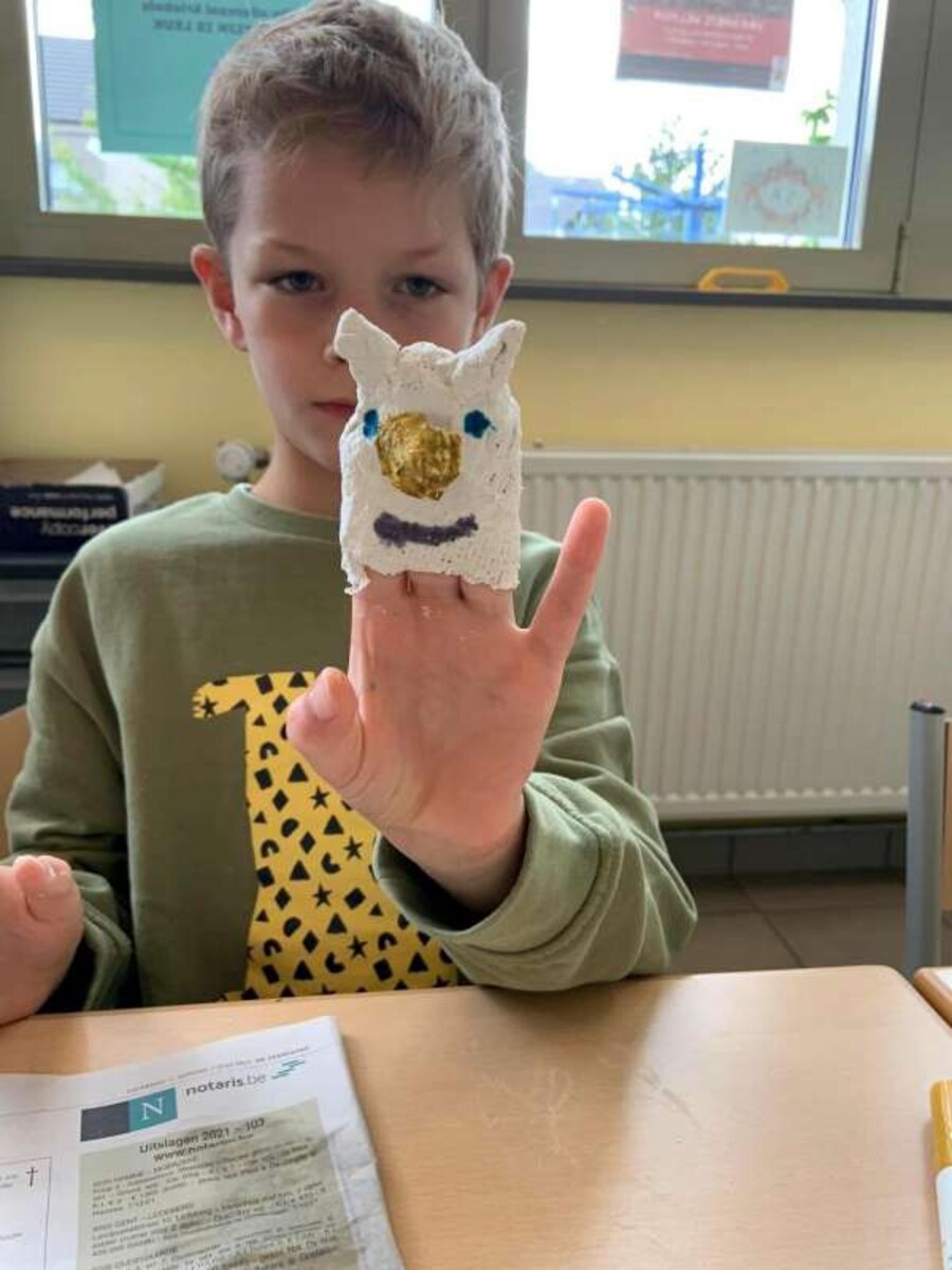 Vandaag kwam juf Laura op bezoek met een leuke workshop als naverwerking van de voorstelling. We knutselden met gips ons eigen vingerpopje van ons favoriete sprookjesfiguur.