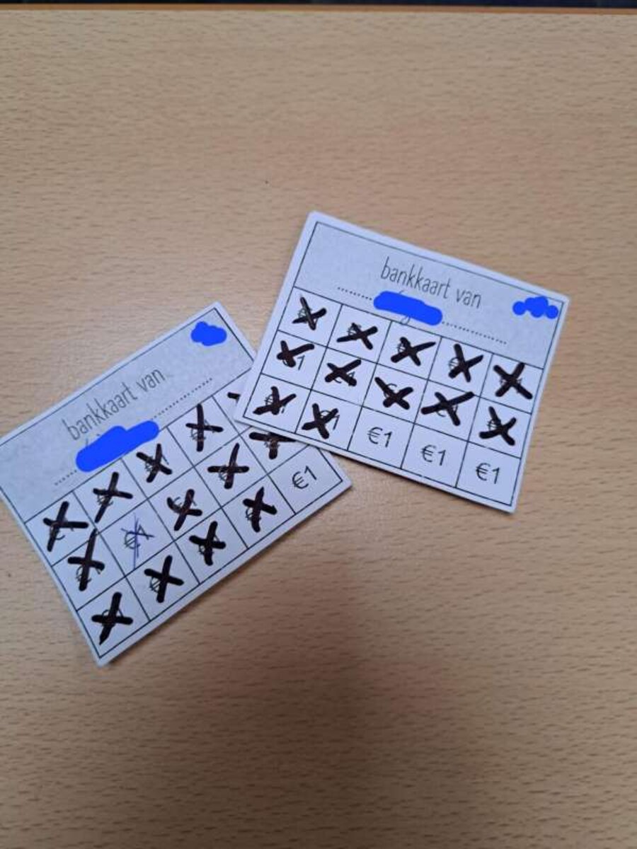 Een bankkaart met 15 euro om de dag door te komen. Kiezen tussen een fruitje van 1 of 2 euro, kiezen tussen boterhammen met hesp (€ 1),
