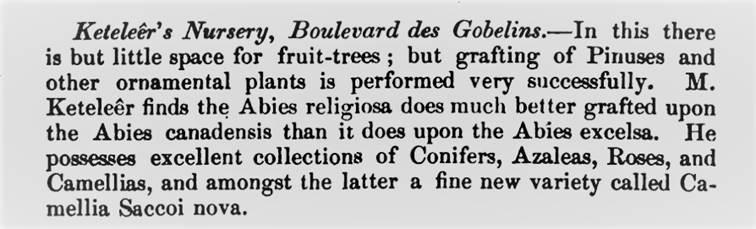 Vanaf 1831 krijgt Keteleer de leiding over de kweek en de vermeerdering van camelia’s. Door zijn toedoen groeit de cameliacollectie van Fromont uit tot één van de belangrijkste van Europa.