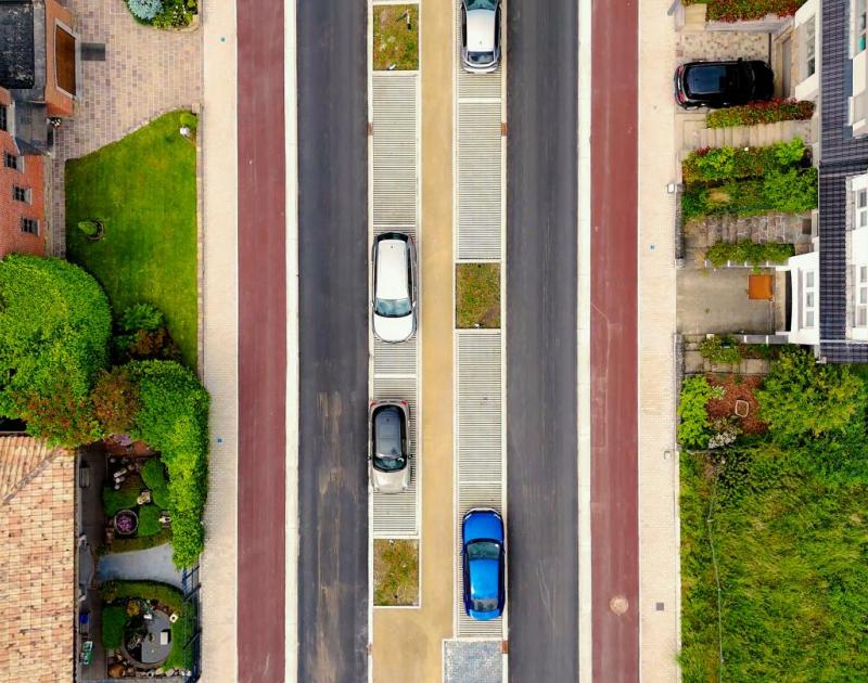 We willen van de Baron de Vironlaan niet alleen een veilige laan maken, we willen de laan ook wapenen tegen de klimaatverandering en ervoor zorgen dat ze klimaatresistent is. Dit willen we onder andere doen met waterdoorlatende parkeervakken én middenberm.