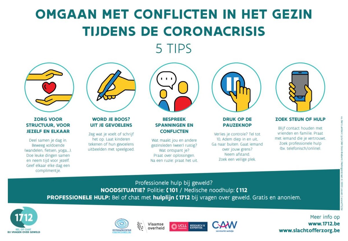 Dat je geregeld en grondig je handen moet wassen, weet ondertussen iedereen. Dat je minstens 1,5 meter afstand moet houden van elkaar ook. Maar wist je dat het nu even belangrijk is om te zorgen voor de nodige rust en routine en dat we nu meer dan ooit zorg moeten dragen voor elkaar? Hieronder vind je concrete tips over hoe we hier samen voor kunnen zorgen.