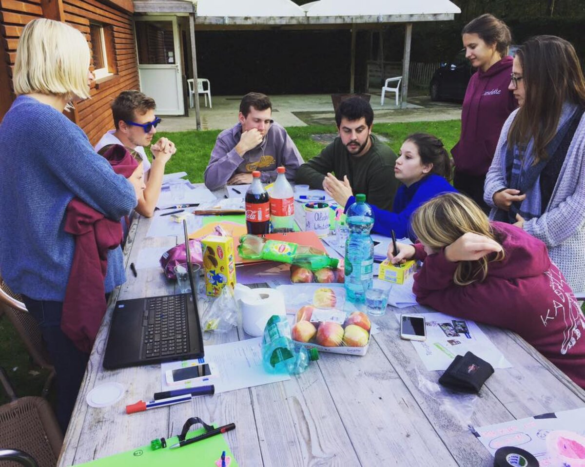 Een groep animatoren en hoofdanimatoren van speelplein Begijnenborre bekijken samen met Team Jongeren op welke manier de kwaliteit van de speelpleinwerking in Dilbeek gegarandeerd kan blijven en verbeterd kan worden.