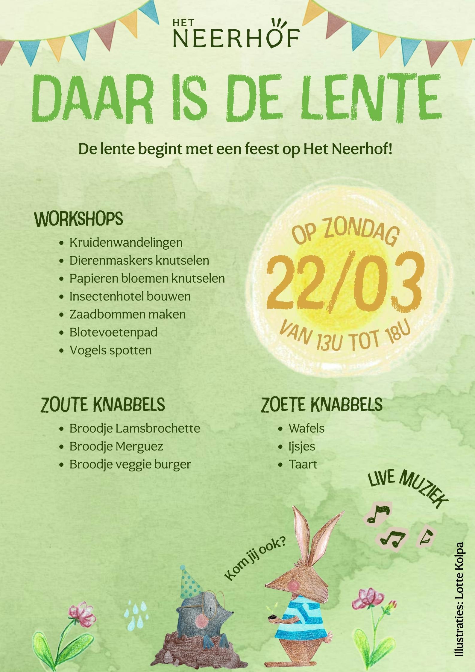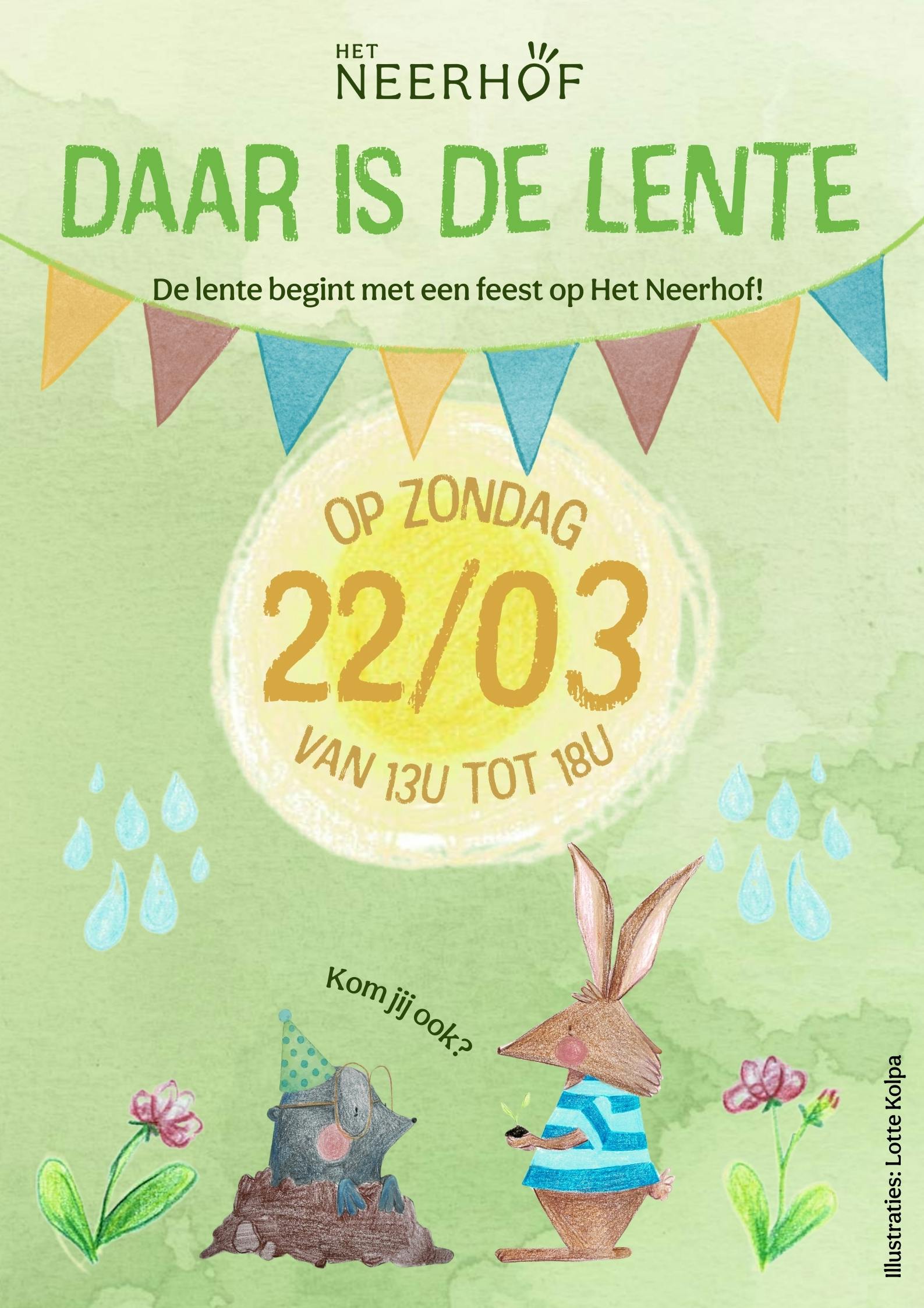 Op zondag 22 maart verwelkomen we het nieuwe seizoen met een warme, bruisende familiedag vol natuur, creativiteit en gezellig samenzijn.